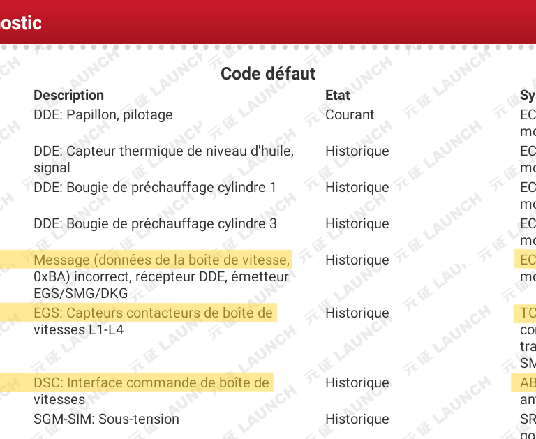 đ Codes dĂ©fauts relevĂ©s au diagnostic